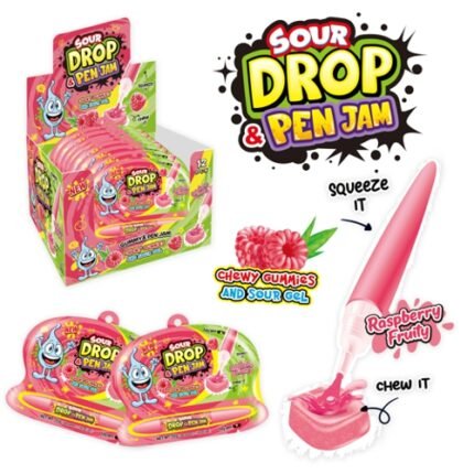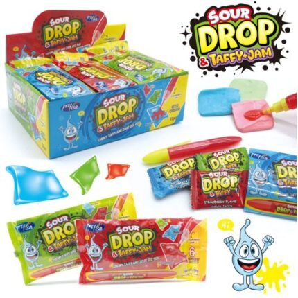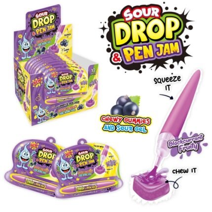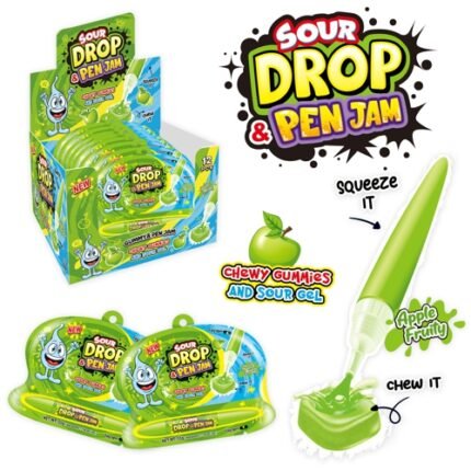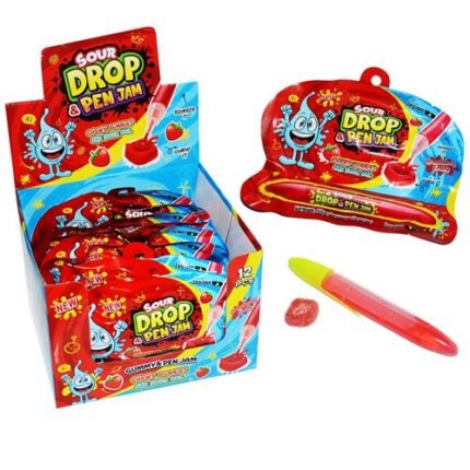 Sour Drop Pen Jam 55gr. 12τεμ.Στύψτε το και μασήστε το! Τα παιδιά θα λατρέψουν αυτά τα διασκεδαστικά Juicy Drop Gummies, κάθε συσκευασία περιέχει νόστιμα ζελέ που γεμίζετε με το super sour gel στυλό για να δημιουργήσετε μια υπέροχη γλυκόξινη γεύση! Γεύση:φράουλα.