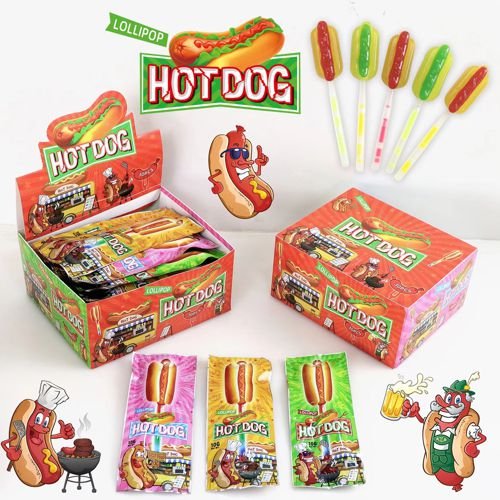 Hot Dog Neon Lollipop 10gr. 30τεμ.Γλυφιτζούρι σε σχήμα Hot Dog με Neon Stick που φωσφορίζει στο σκοτάδι.
