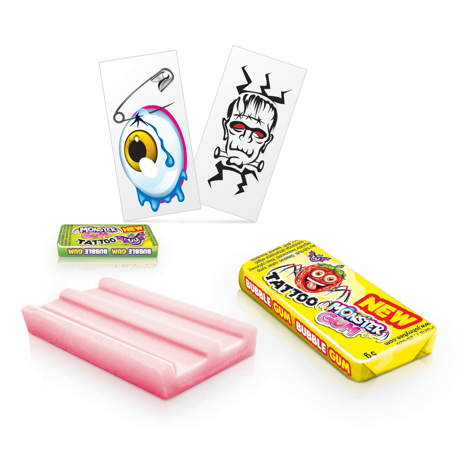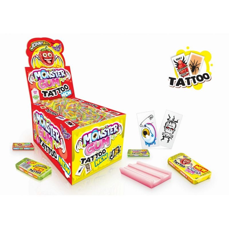 Johny Bee Monster Gum+Tattoo Τσιχλόφουσκα με συλλογή τατουάζ. Γεύση:Tutti-frutti 200τεμ.
