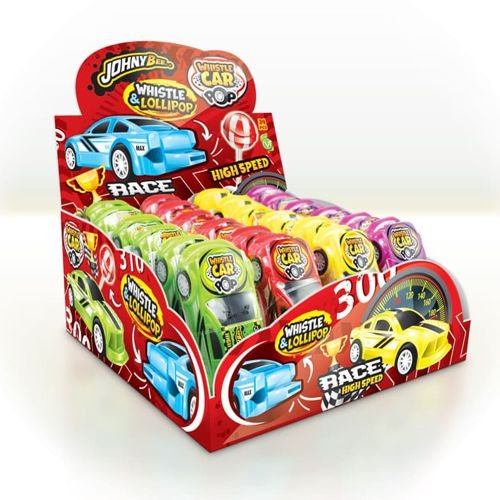 Johny Bee Whistle Car Pop 10gr. 24τεμ. Παιχνίδι αυτοκίνητο με σφυρίχτρα και γλειφιτζούρι.